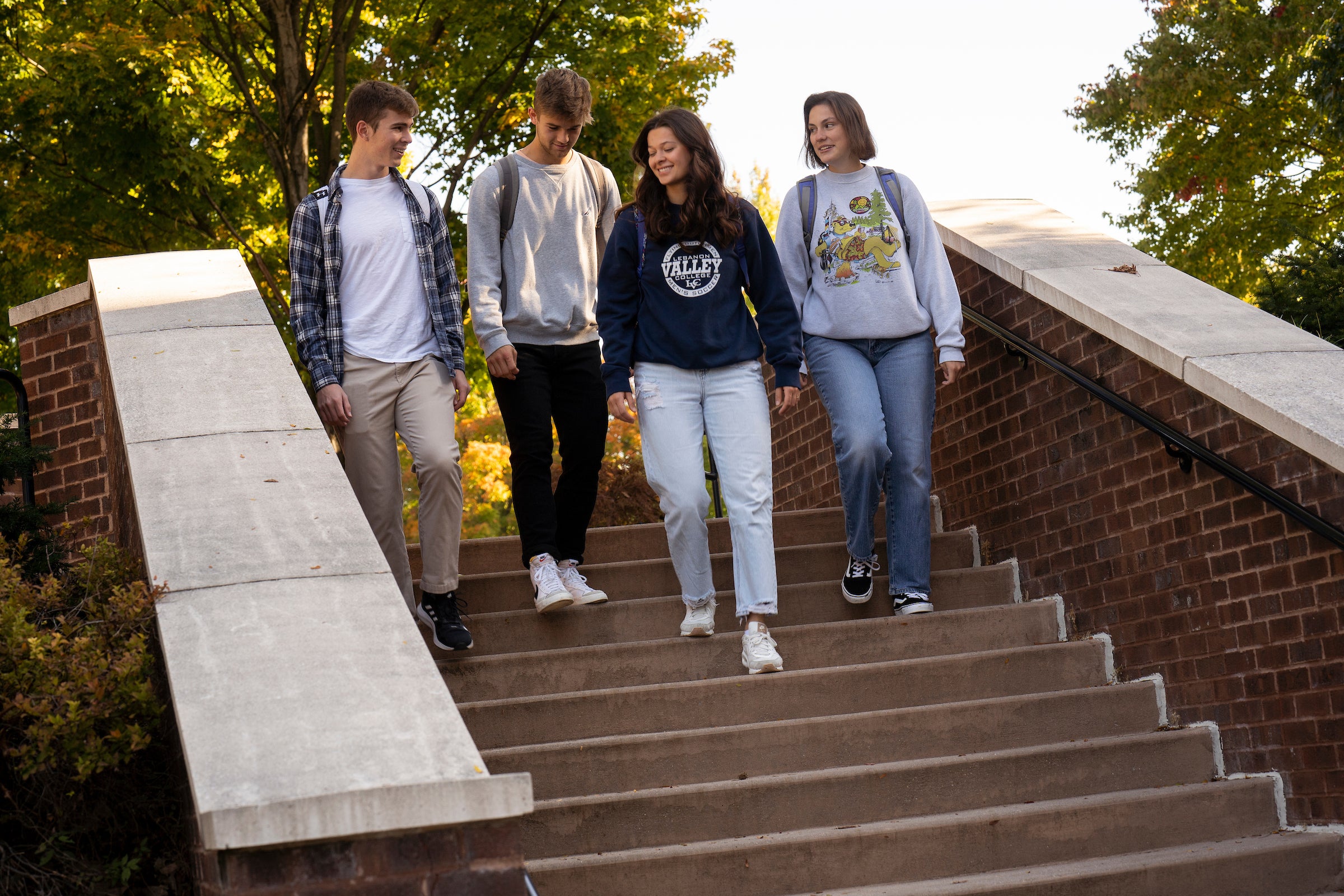 students walking down steps on campus