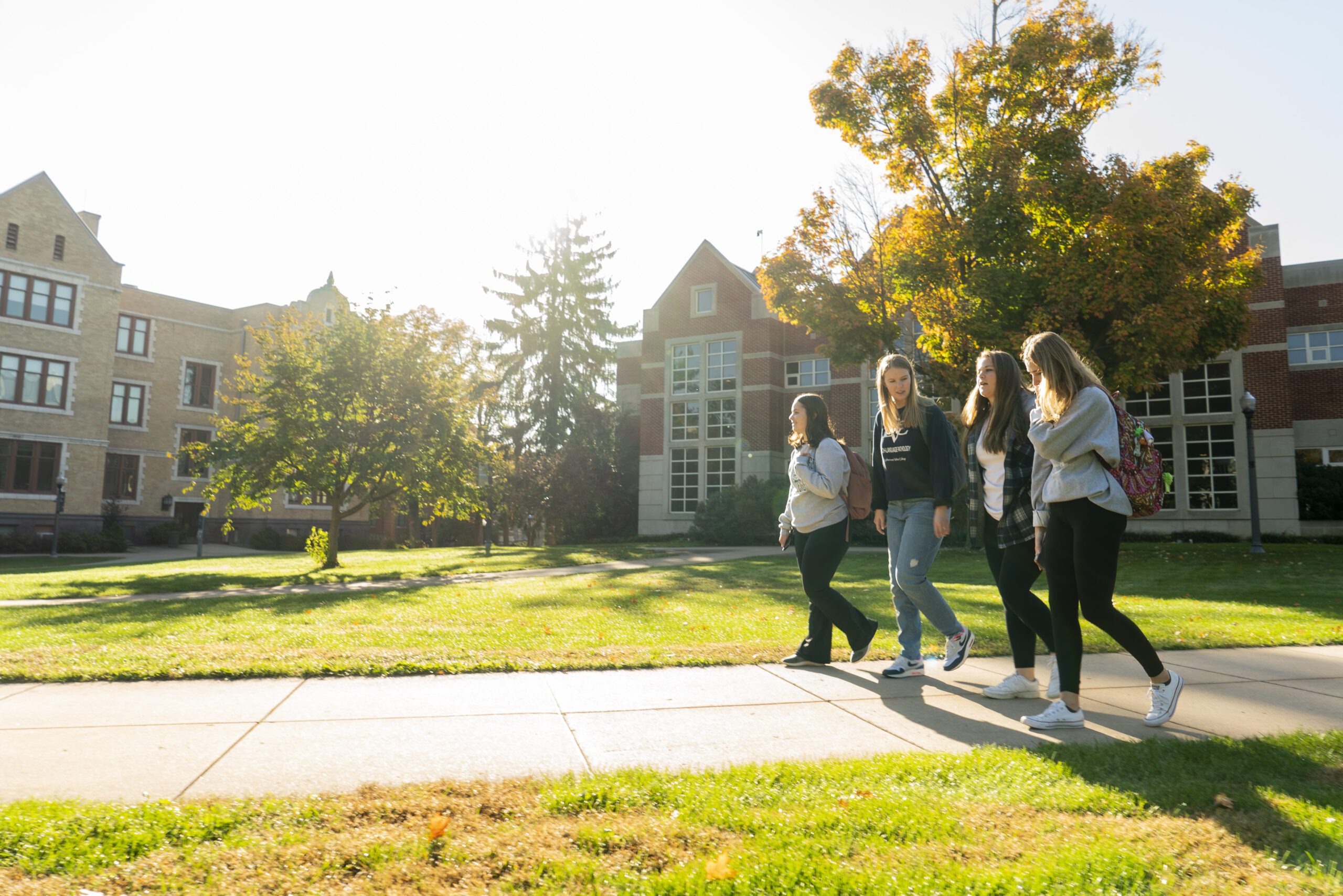Students walk on campus on fall day